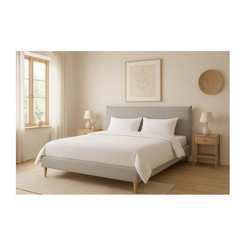 Cama 150x200 cm con cabecero poliester gris. Medidas: 177x219x113 cm