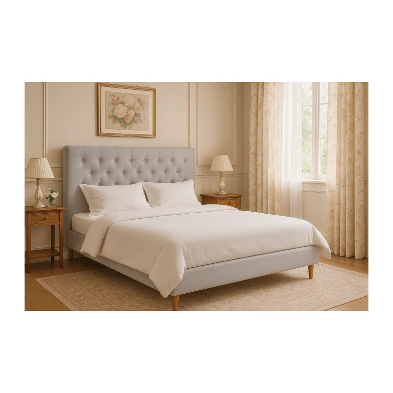 Cama 150x200 cm con cabecero poliester gris. Medidas: 170x219x108 cm
