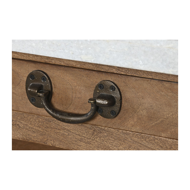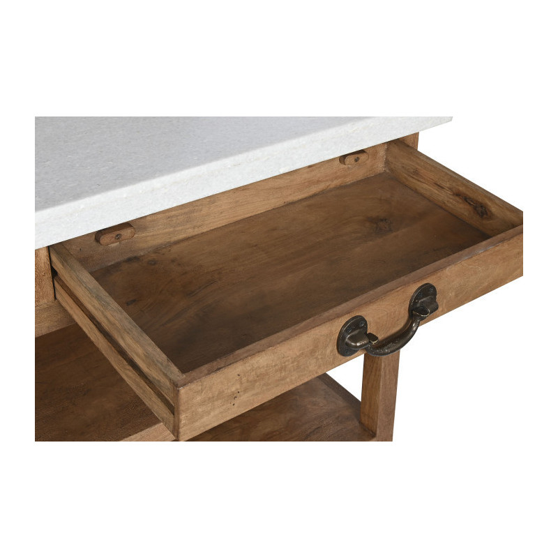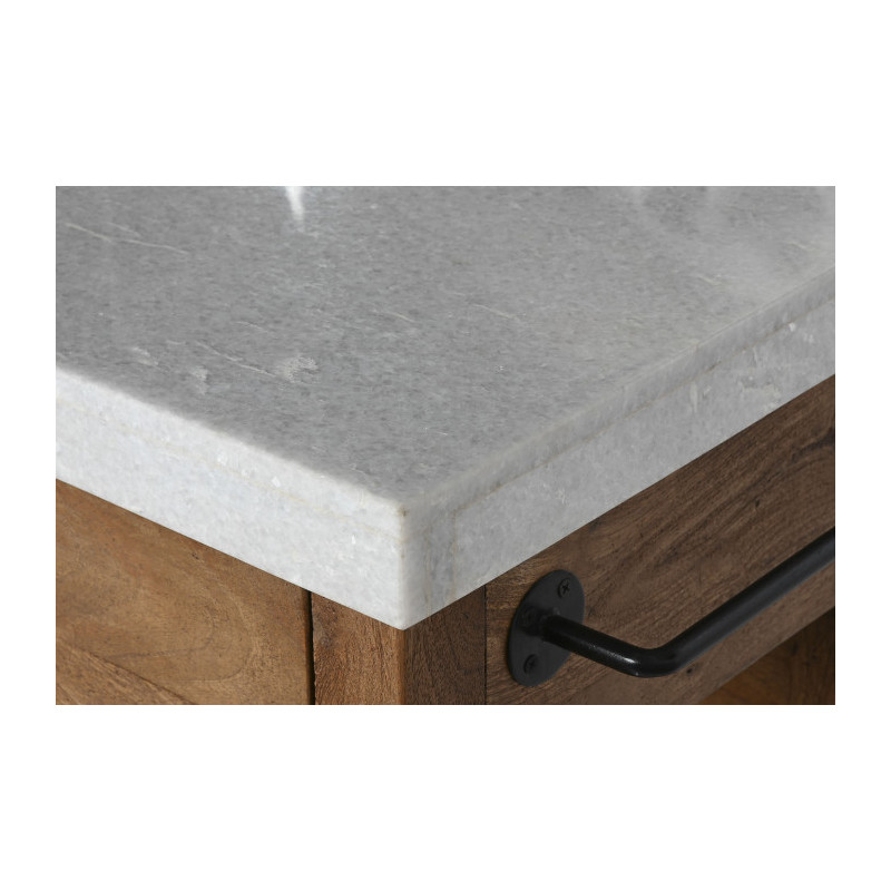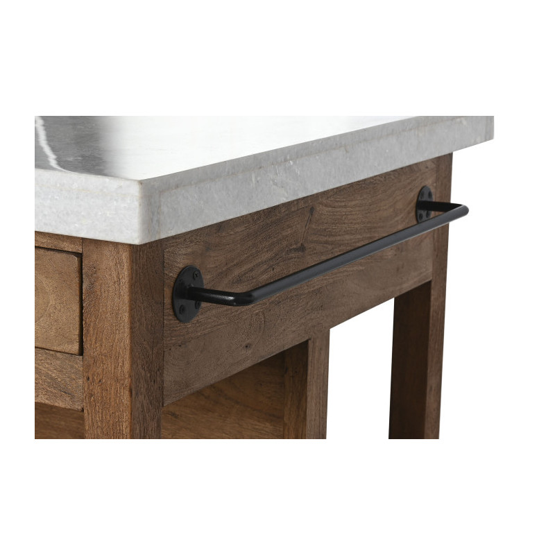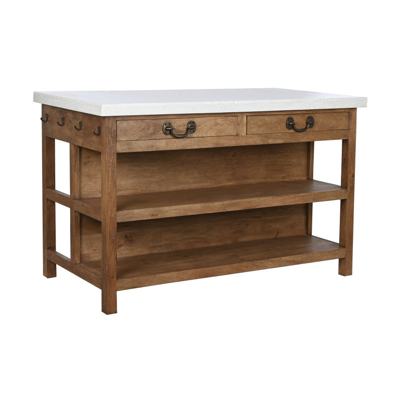 Mesa isla de cocina de madera con encimera de marmol con cajones, baldas y colgadores 147x77x92 cm