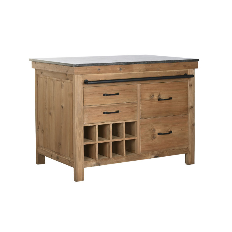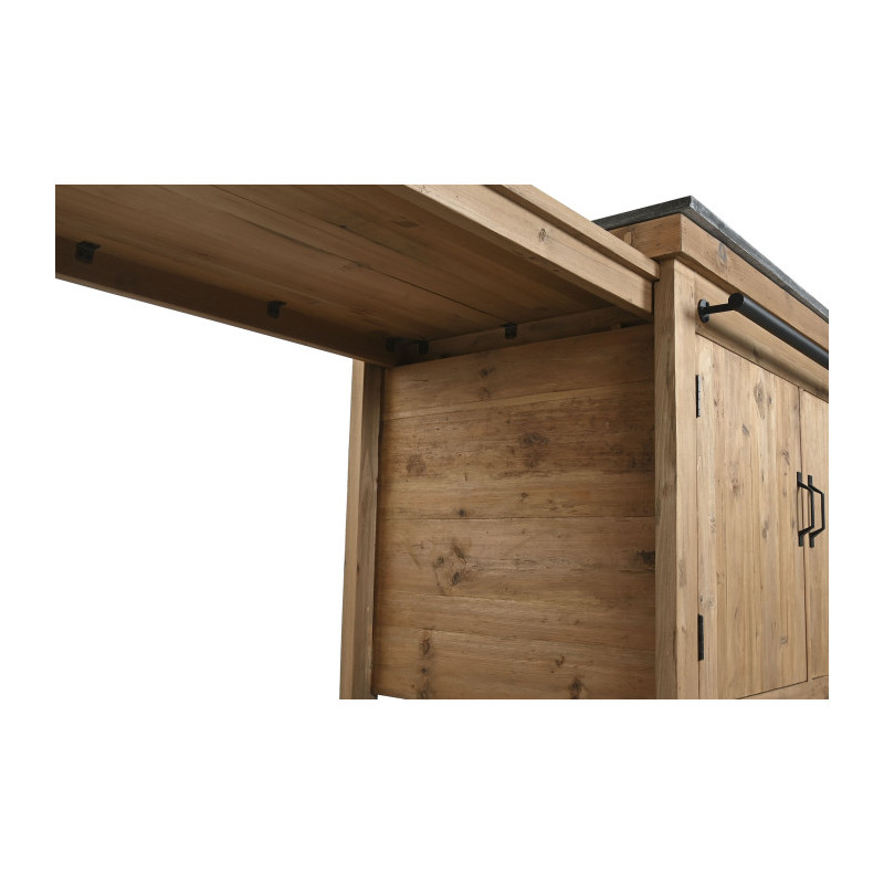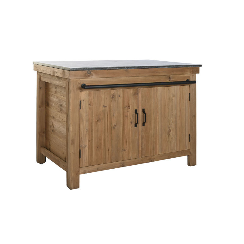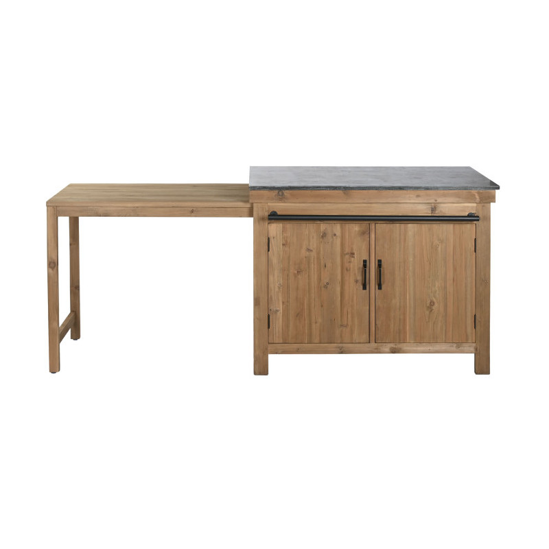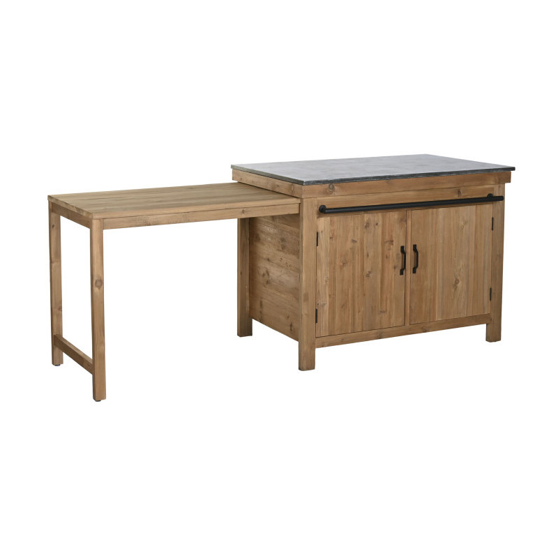 Mesa isla de cocina extensible de madera de abeto con puertas y colgadores 120x75x90 hasta 216 cm