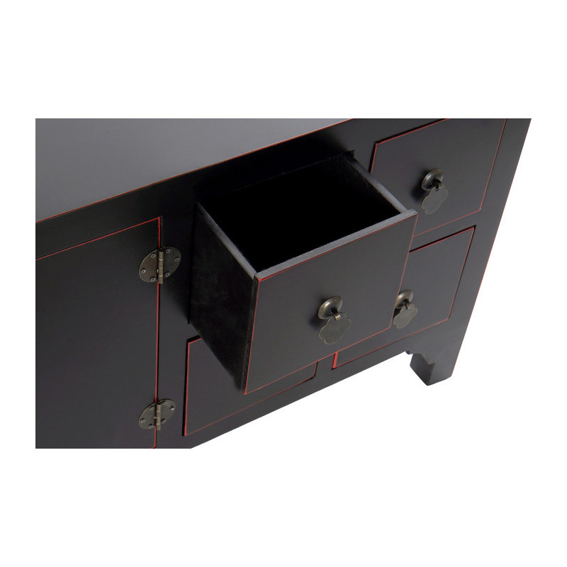 Aparador mueble TV estilo oriental negro 130x24x51 cm