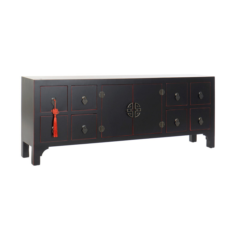 Aparador mueble TV estilo oriental negro. Medidas: 130x24x51 cm