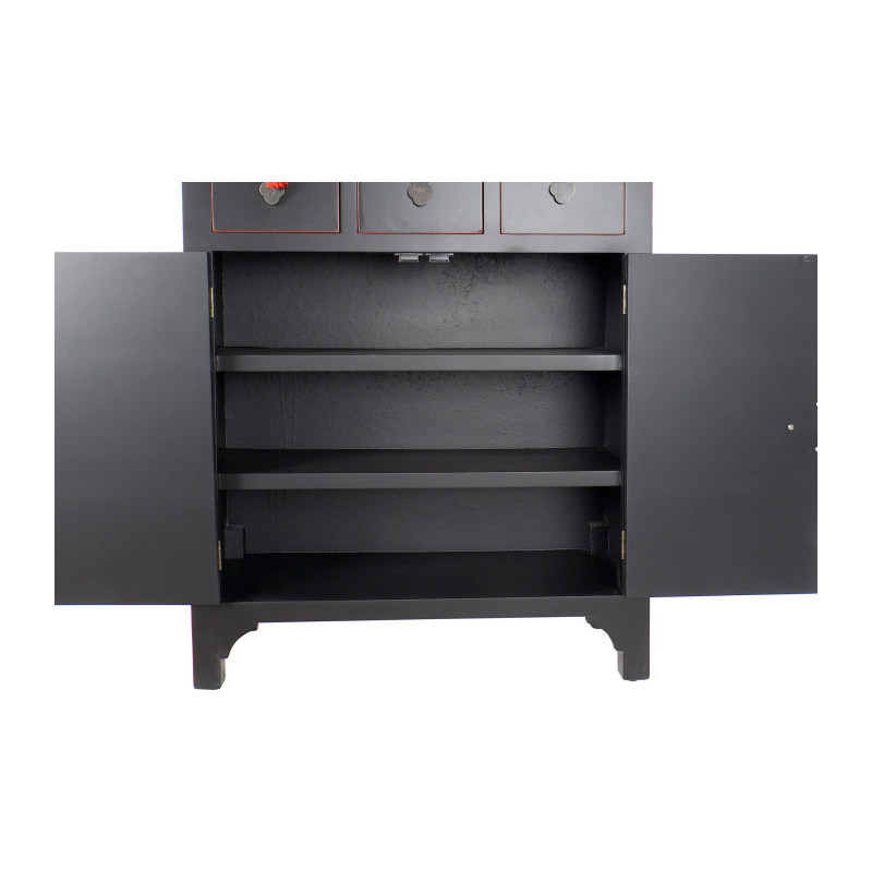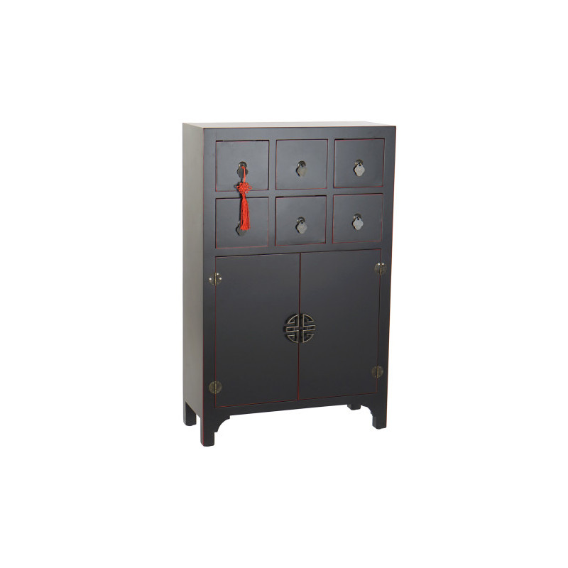 Mueble cajonera estilo oriental negro 63x27x101 cm