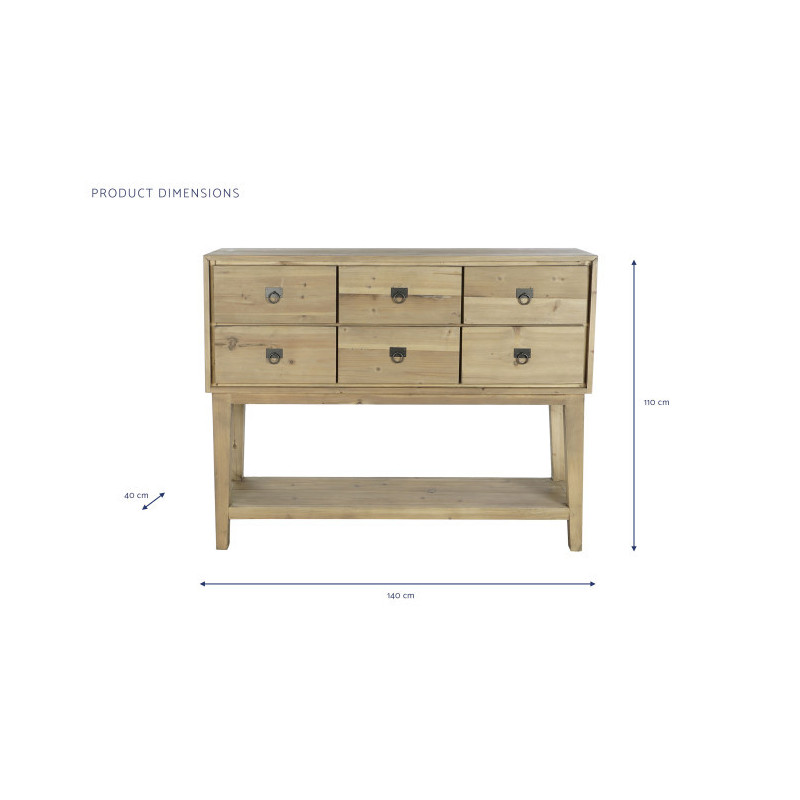 Consola de cajones de pino natural. Medidas: 140x40x110 cm