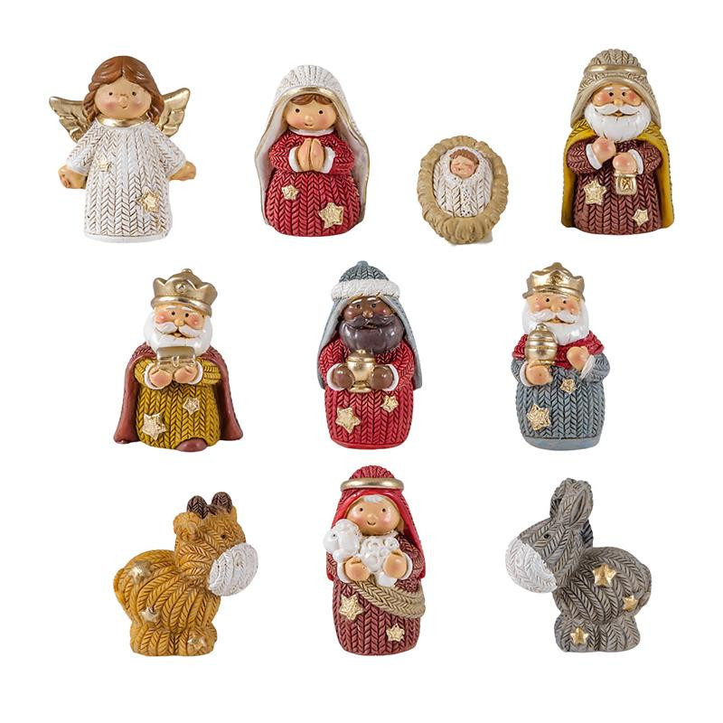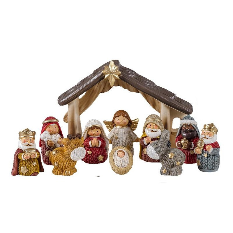 Misterio infantil de 11 piezas con portal de belen figuras resina pintadas a mano portal de 11x7.5 cm