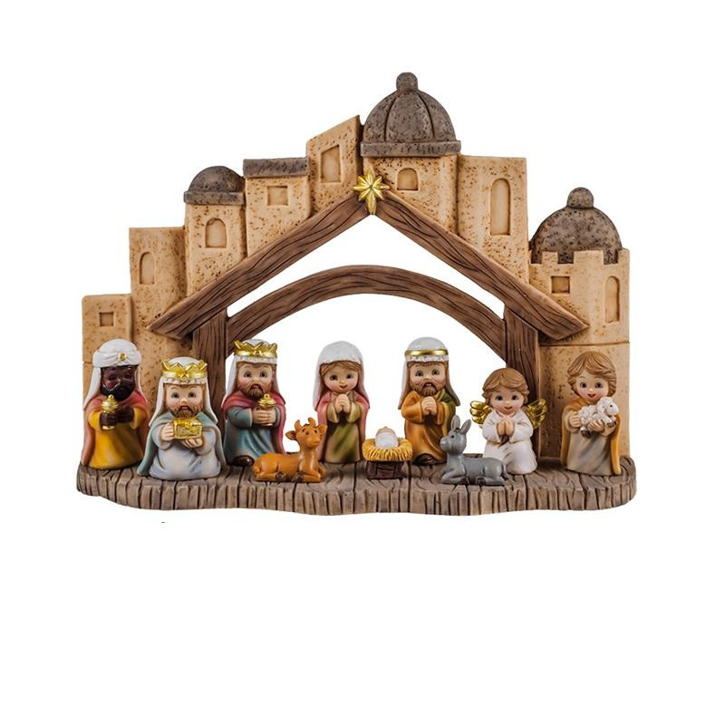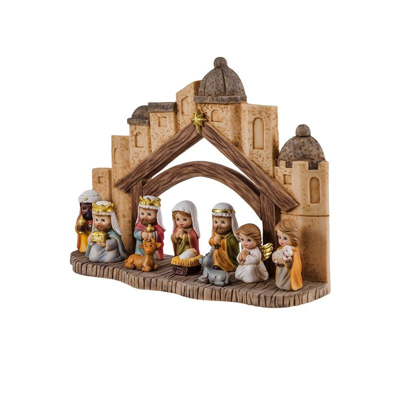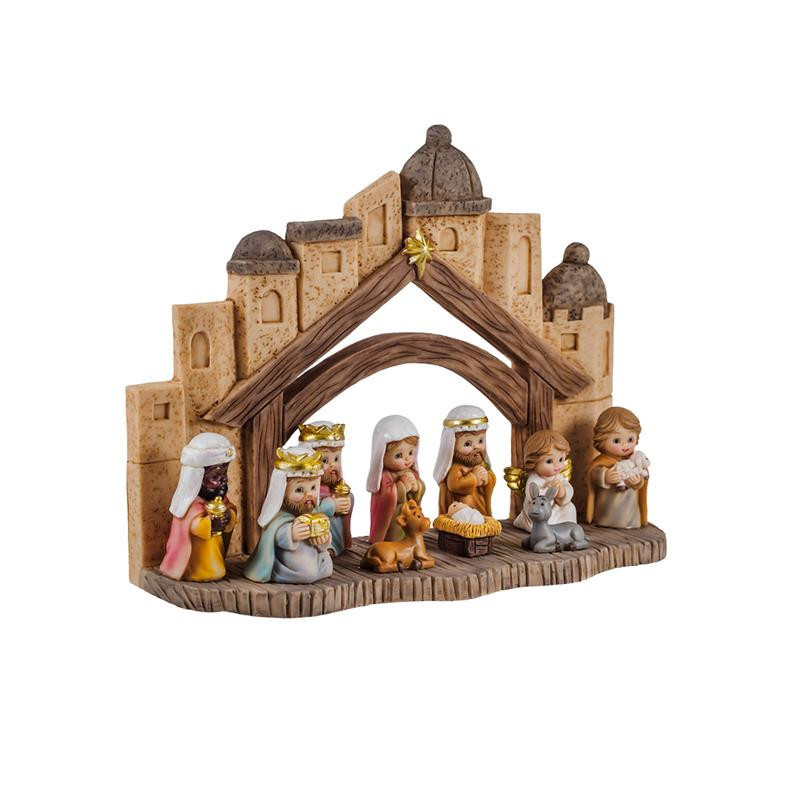 Misterio infantil de 10 piezas con portal y reyes de resina pintado a mano 23x16.5 cm