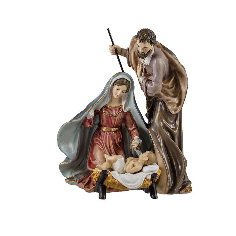 Misterio clasico de 1 pieza Sagrada Familia de resina pintado a mano. Medidas: 17x20 cm