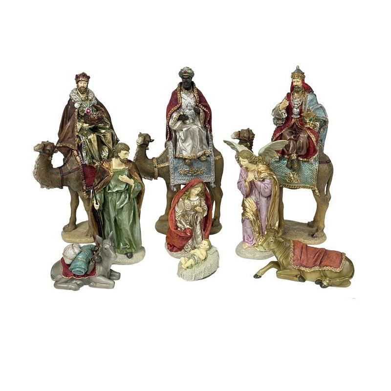 Misterio clasico 9 piezas con resyes en camello de resina pintado a mano 45 cm