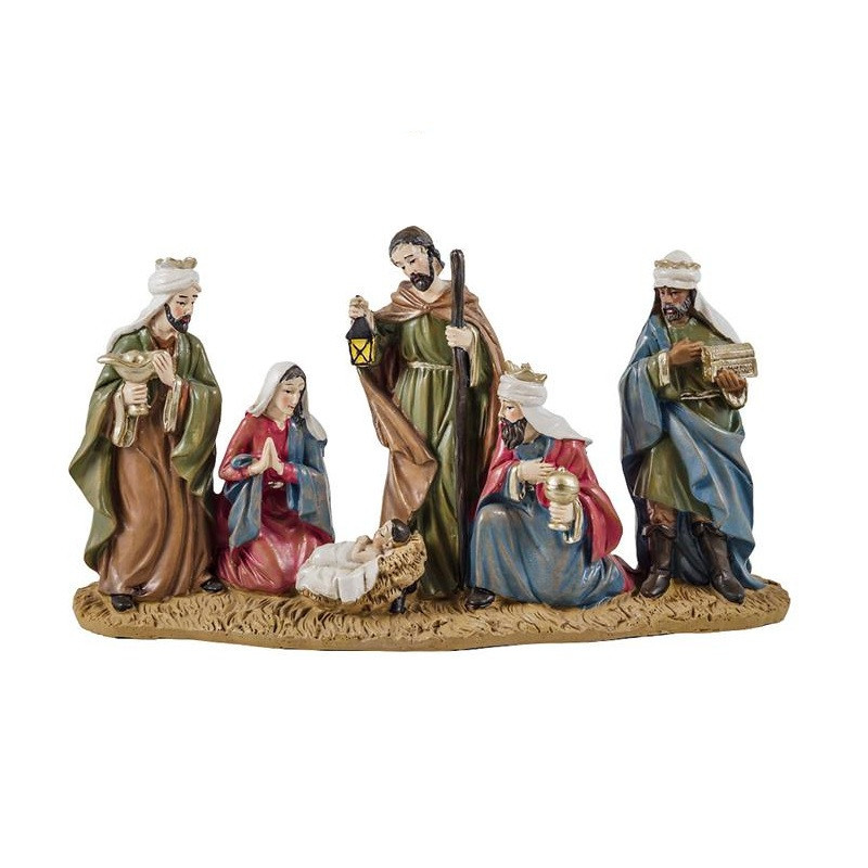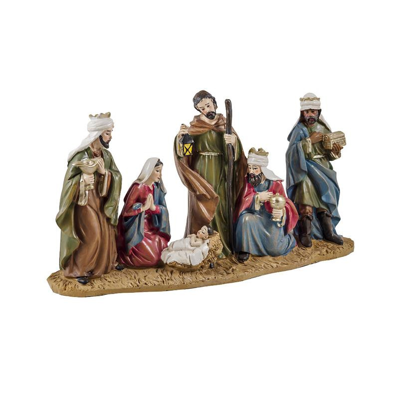 Misterio nacimiento de 1 pieza con los reyes de resina pintado a mano 26x8x15 cm