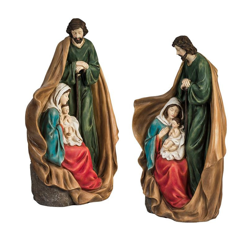 Misterio nacimiento de 1 pieza con el manto de San Jose protegiendo la Sagrada Familia de resina pintado a mano 15x12x46 cm