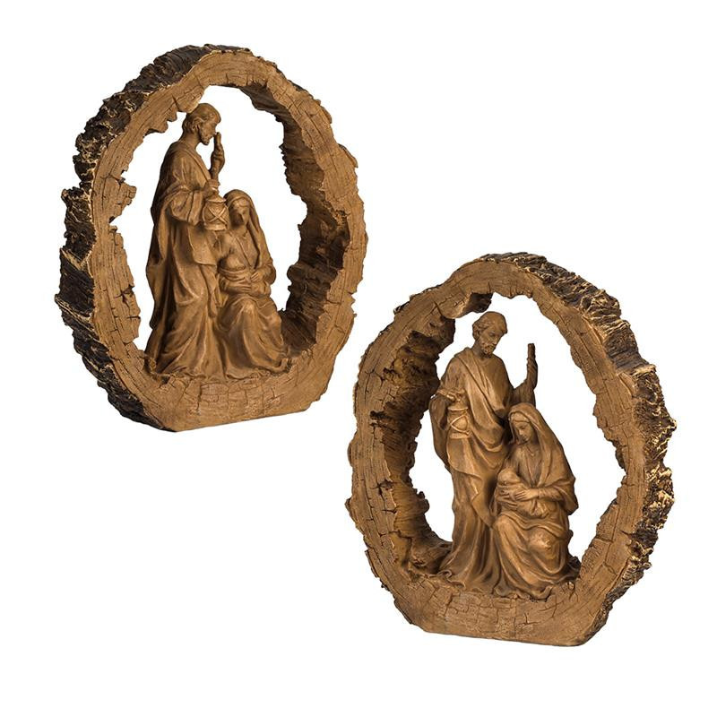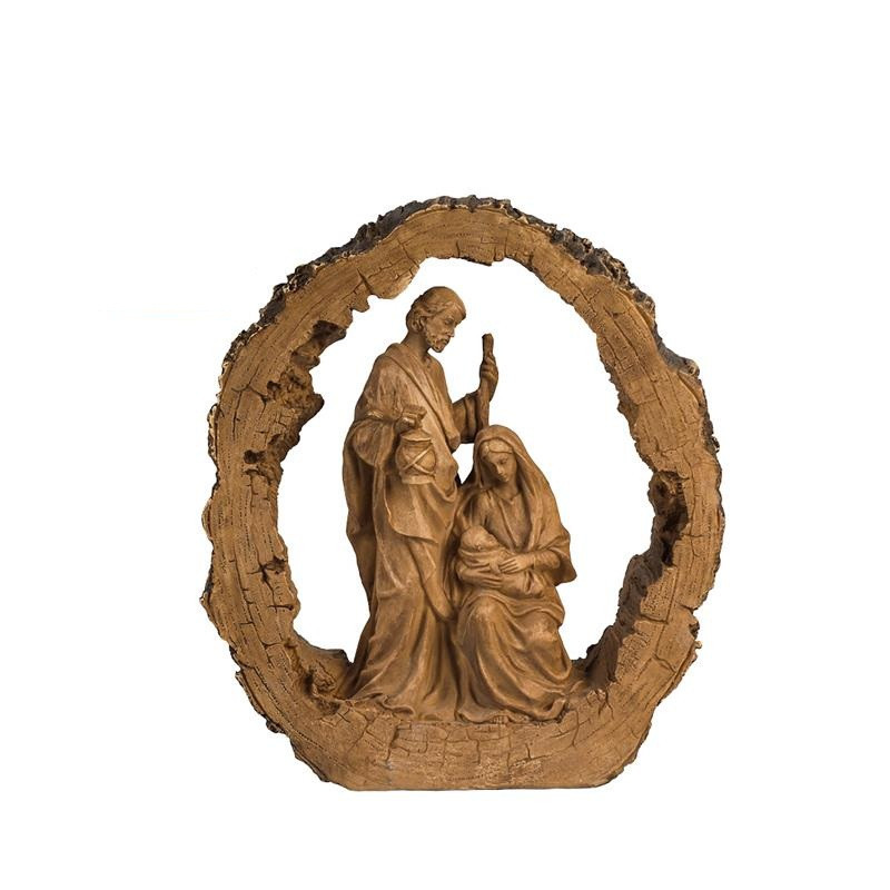 Misterio nacimiento tallado en tronco de madera de 1 pieza 38x7x38 cm