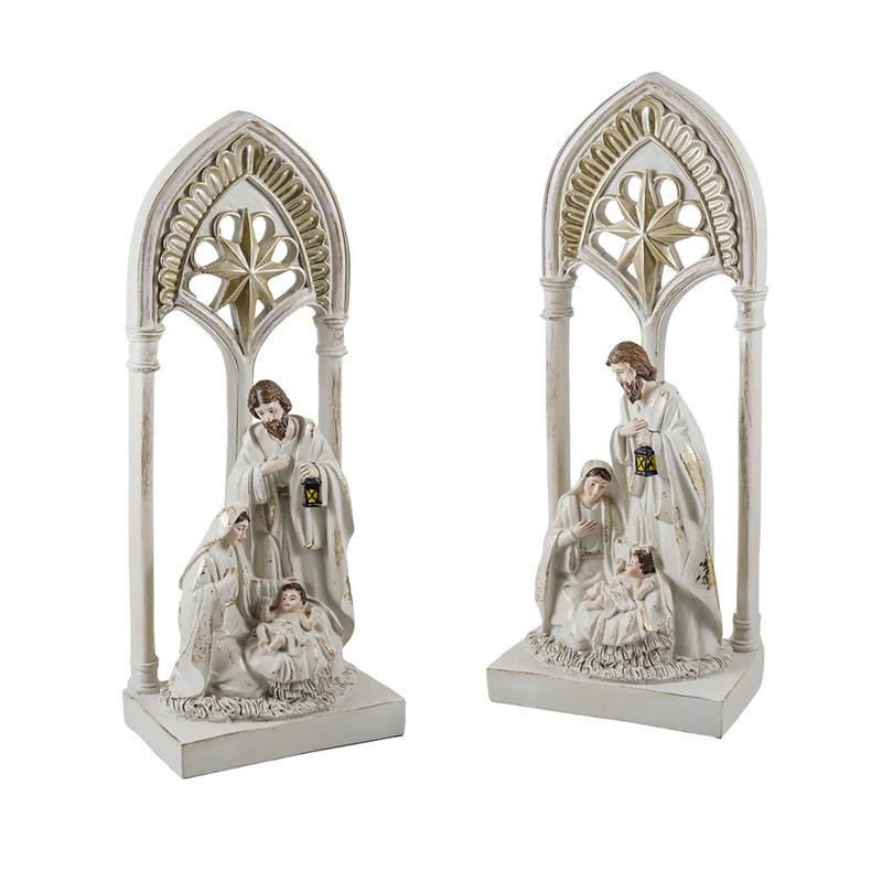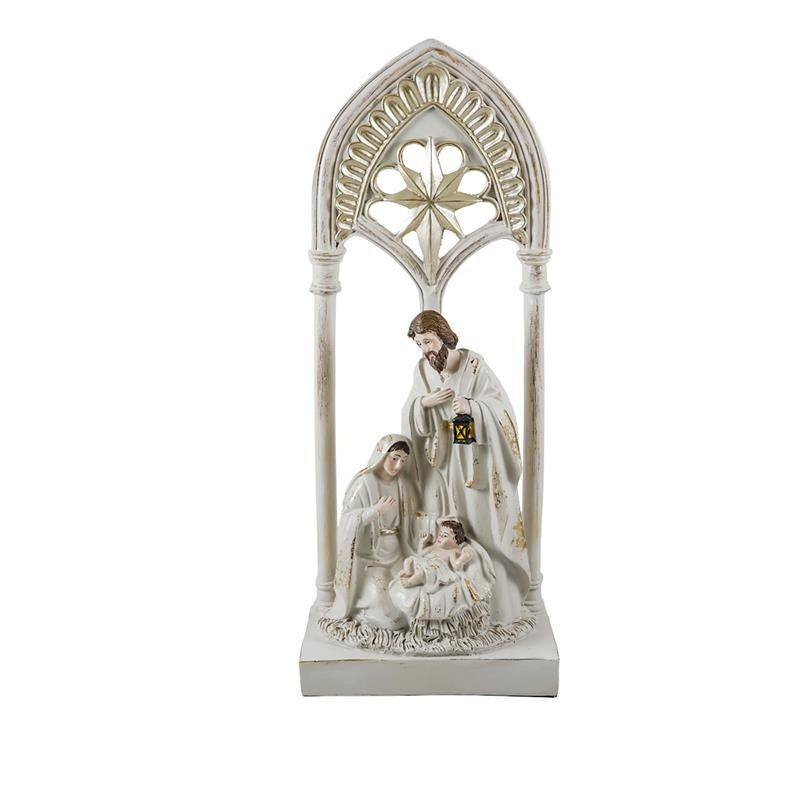 Misterio nacimiento de 1 pieza con un arco como portal de resina crema y dorado 12x12x30 cm