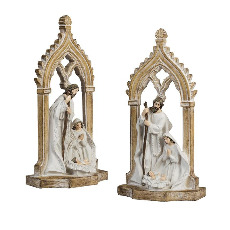 Misterio nacimiento de 1 pieza con un arco como portal de resina crema y dorado 25x19x43 cm
