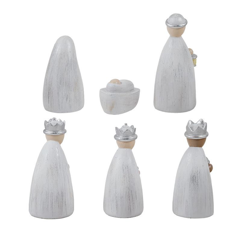 Misterio nacimiento moderno minimalista de 6 piezas sin cara blanco y plata 13 cm