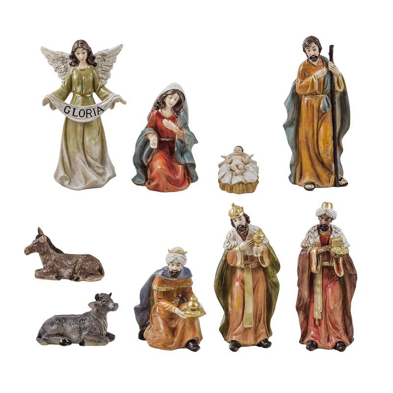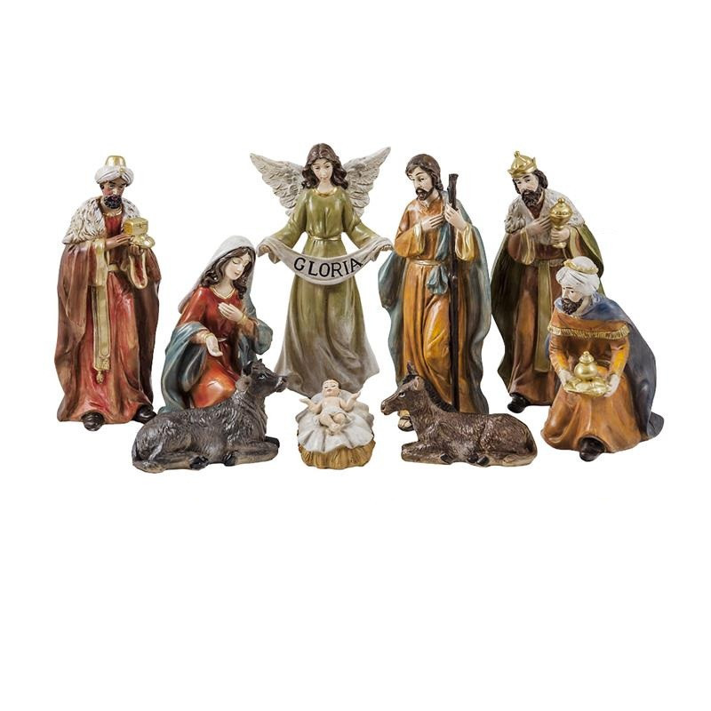 Misterio nacimiento clasico de 9 piezas de resina pintado a mano 20 cm