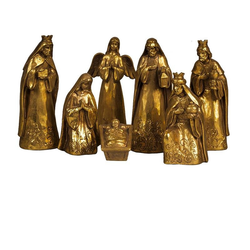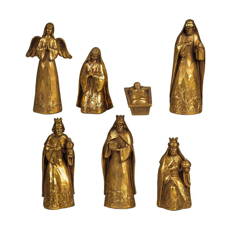 Misterio nacimiento clasico de 7 piezas dorado de resina pintado a mano 20 cm