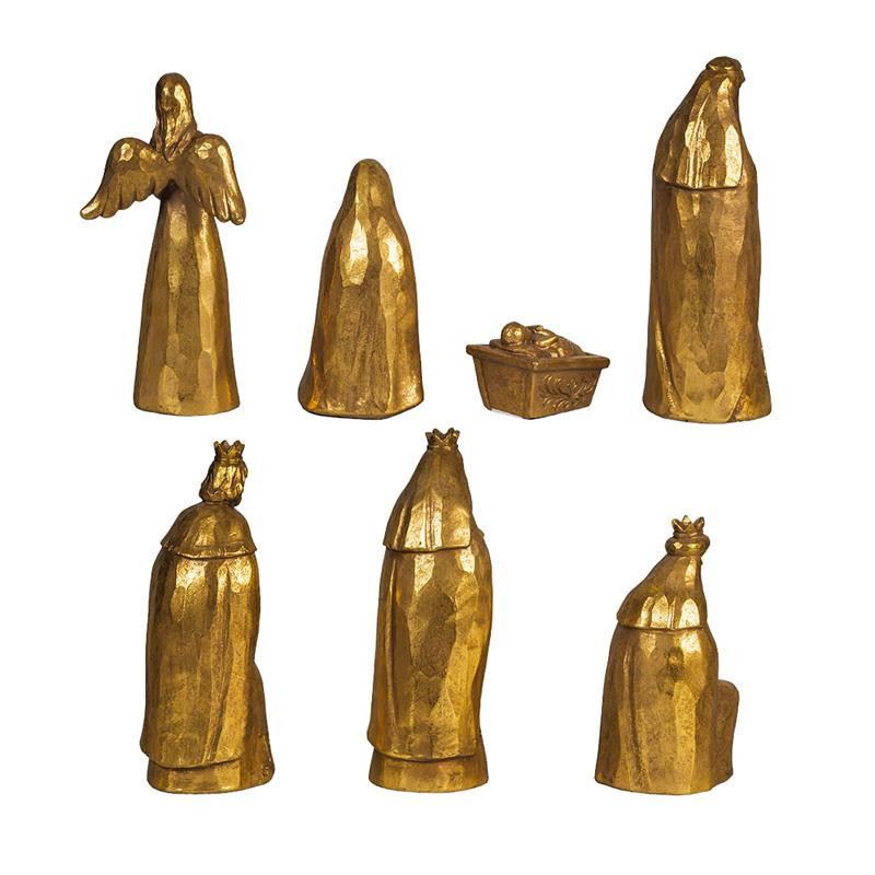 Misterio nacimiento clasico de 7 piezas dorado de resina pintado a mano. Medidas: 20 cm