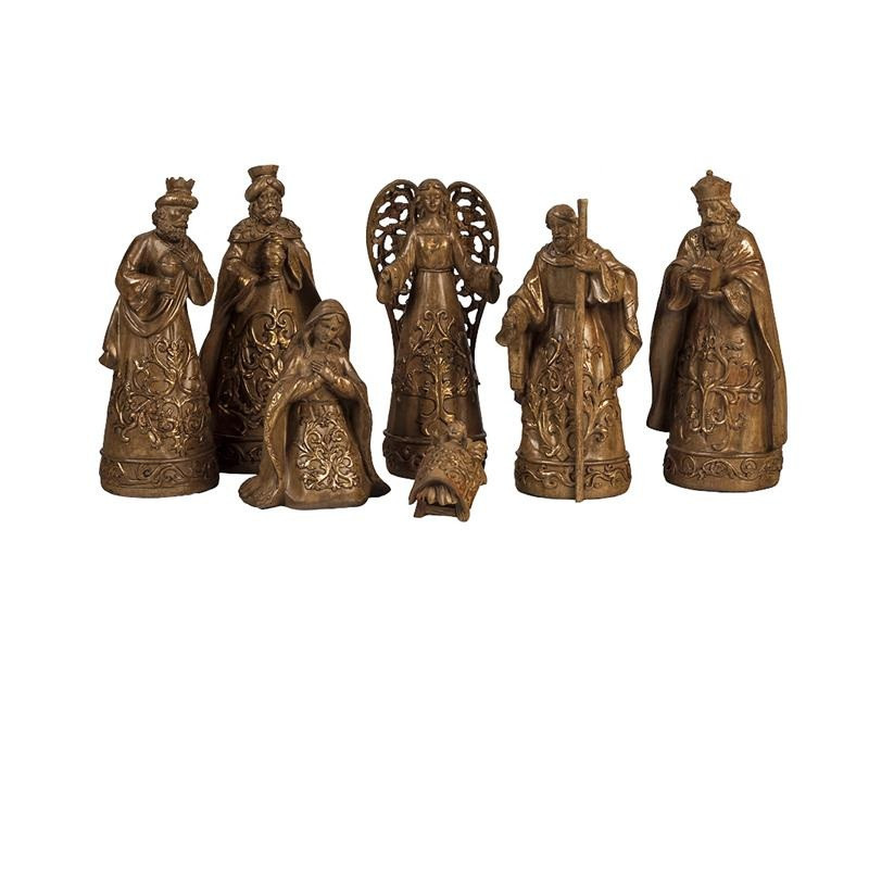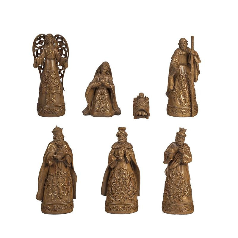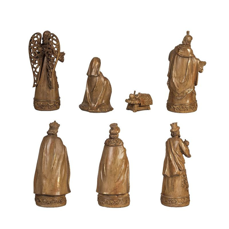 Misterio nacimiento clasico de 7 piezas dorado de resina pintado a mano 20 cm