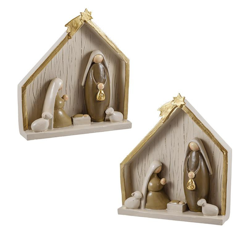 Misterio moderno sin caras con portal animales y estrella marron y dorado de resina pintado a mano 17x7x19 cm