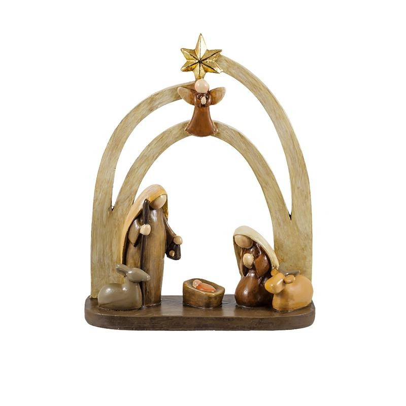 Misterio moderno sin caras con portal animales y estrella marron y dorado de resina pintado a mano 16x6x20 cm