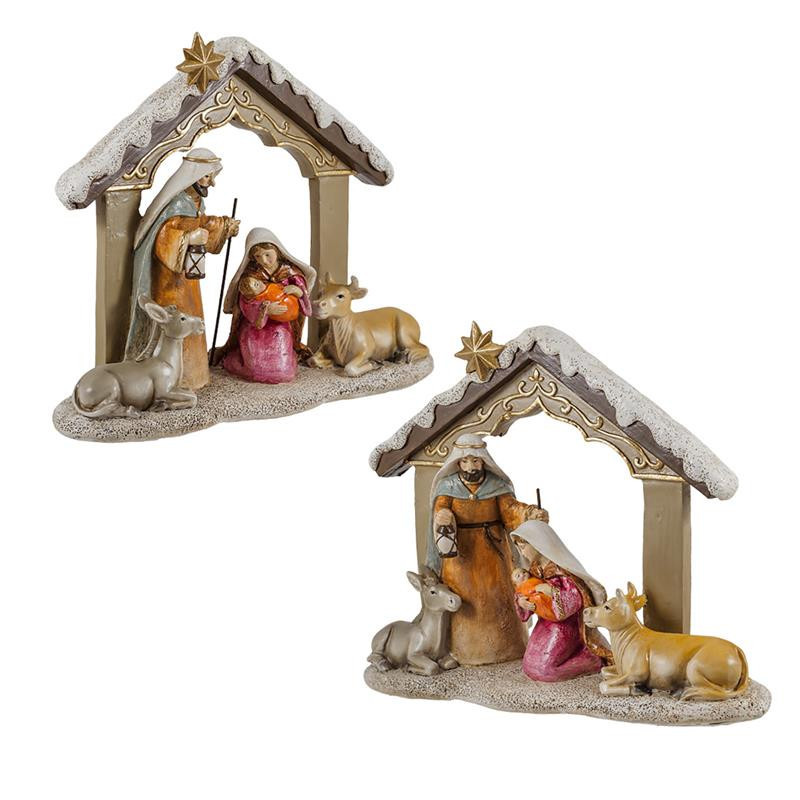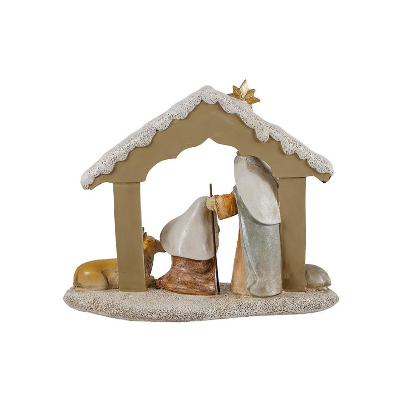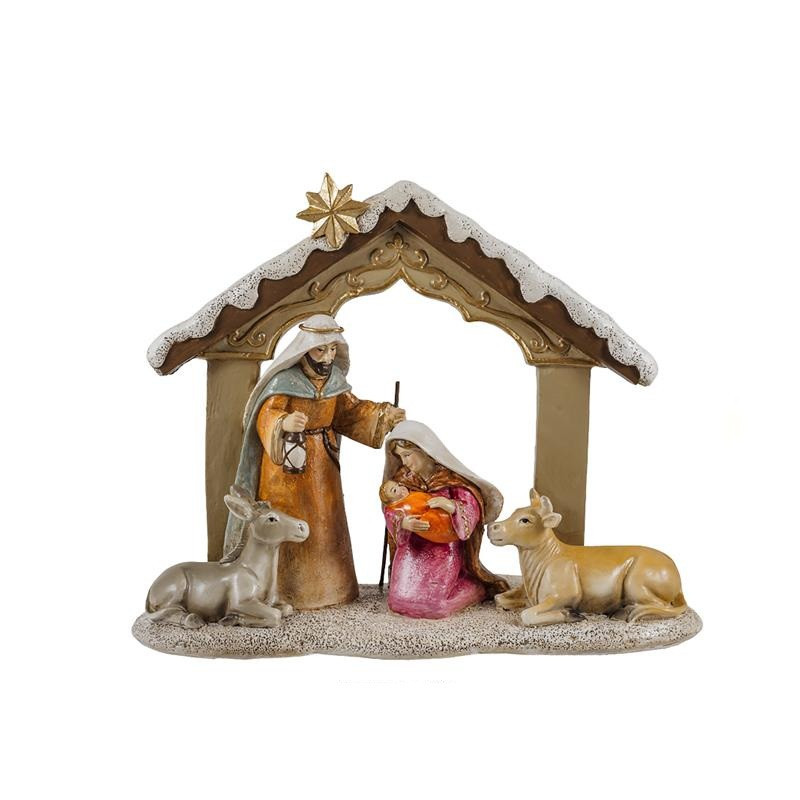 Misterio nacimiento de 1 pieza con animales y portal de resina pintado a mano 22x10x17 cm