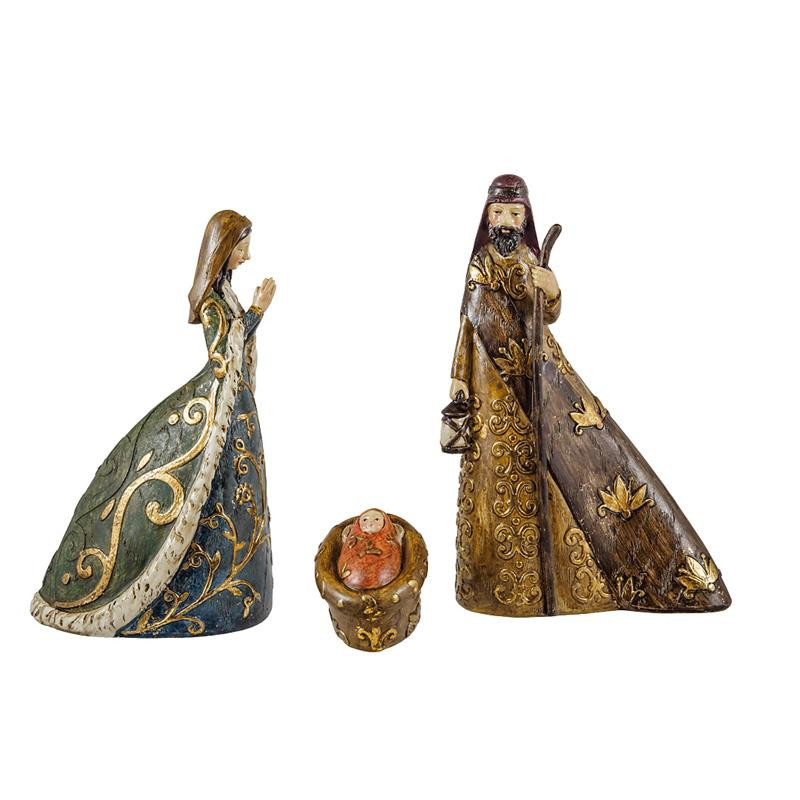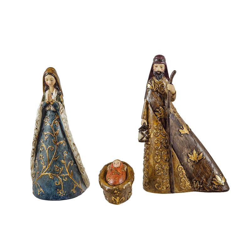 Misterio nacimiento clasico de 3 piezas detalles dorado de resina pintado a mano 20 cm