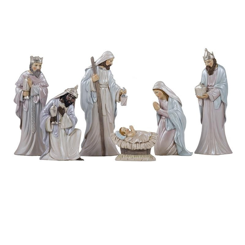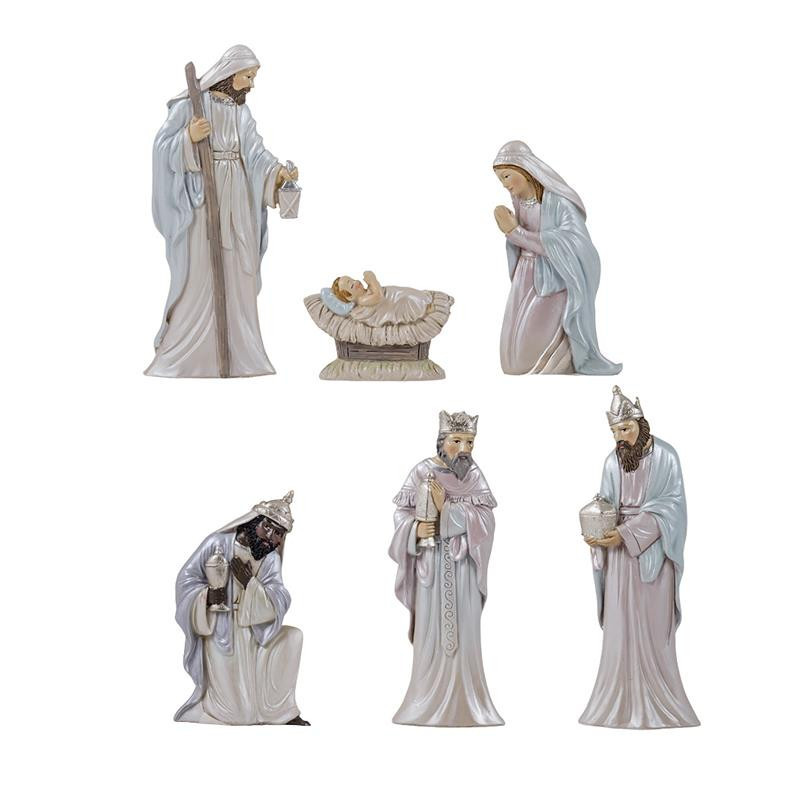 Misterio nacimiento clasico de 6 piezas tono pastel de resina pintado a mano 15 cm