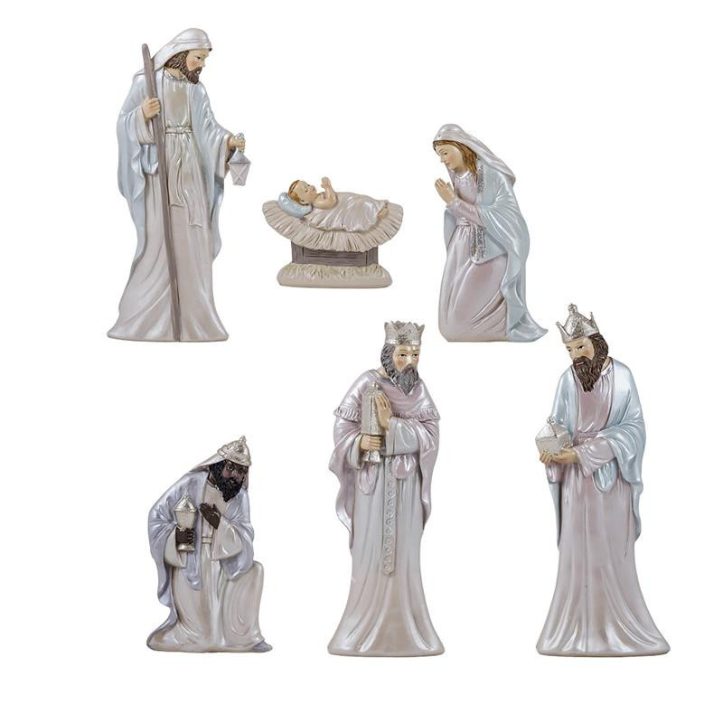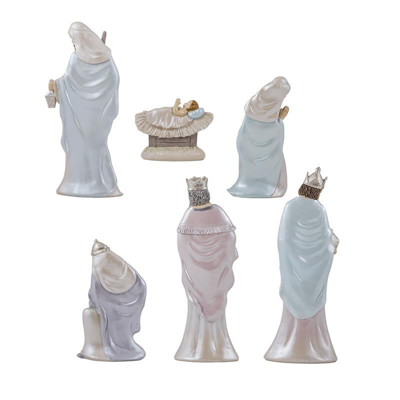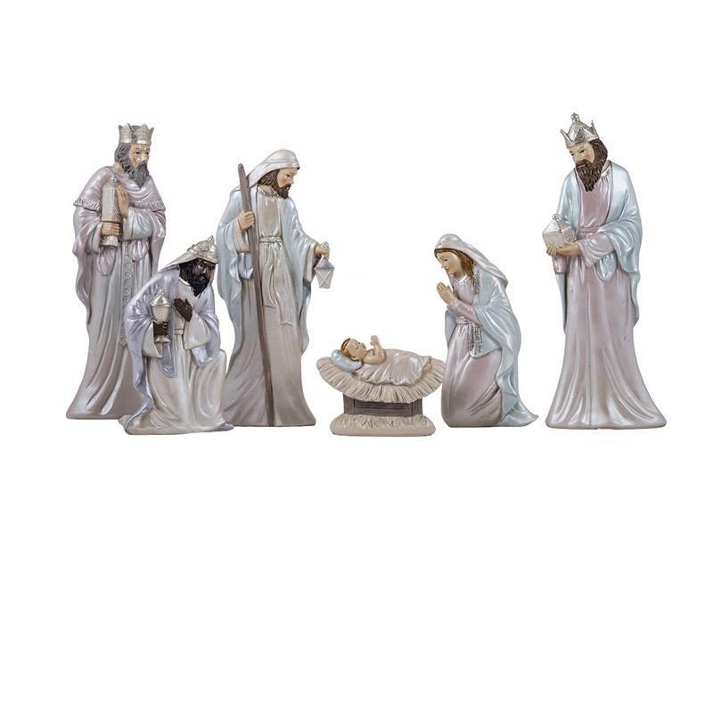 Misterio nacimiento clasico de 6 piezas tono pastel de resina pintado a mano 20 cm