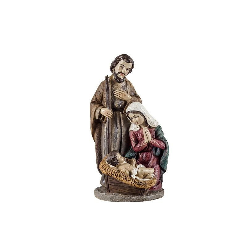 Misterio nacimiento de 1 pieza con la sagrada familia virgen roja de resina pintado a mano. Medidas: 6x6x13 cm