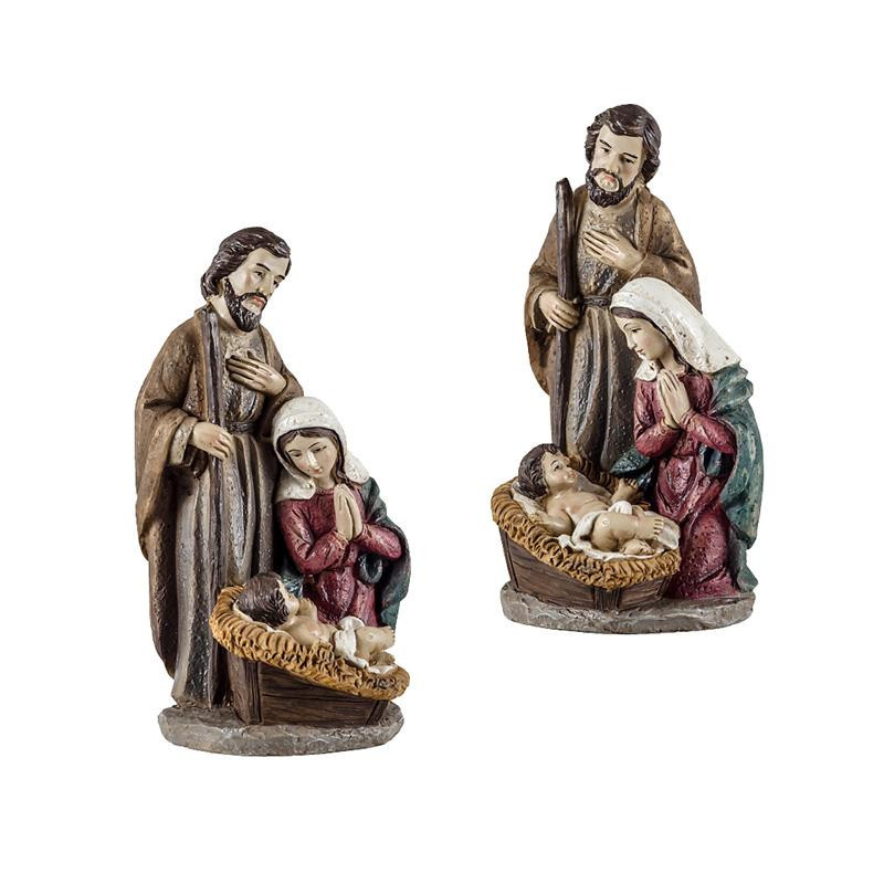 Misterio nacimiento de 1 pieza con la sagrada familia virgen roja de resina pintado a mano 6x6x13 cm