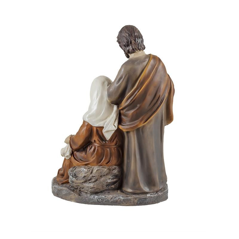 Misterio nacimiento de 1 pieza con la sagrada familia tonos ocre de resina pintado a mano 6x6x16 cm