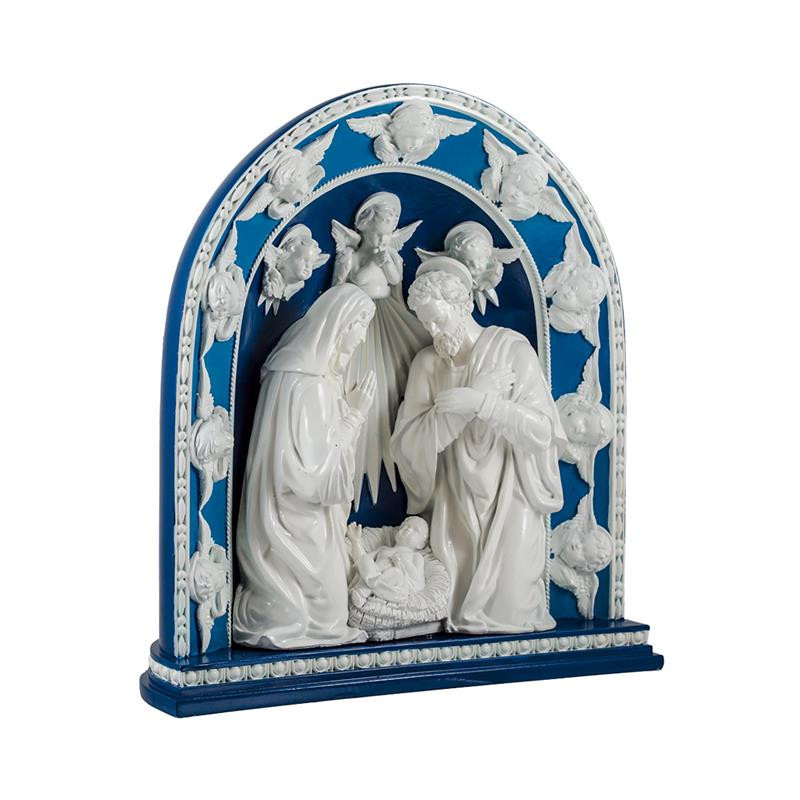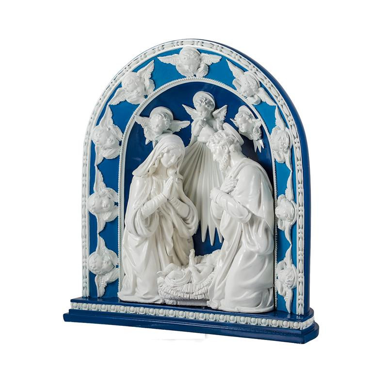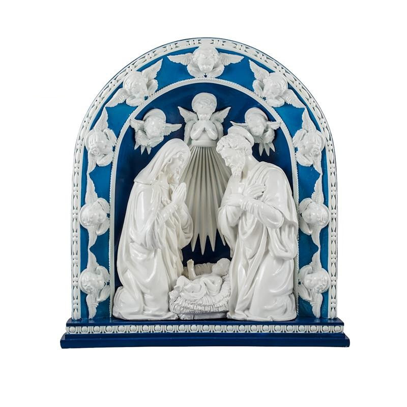 Misterio azul y blanco rodeado de angelitos de resina pintado a mano 29x10x31 cm