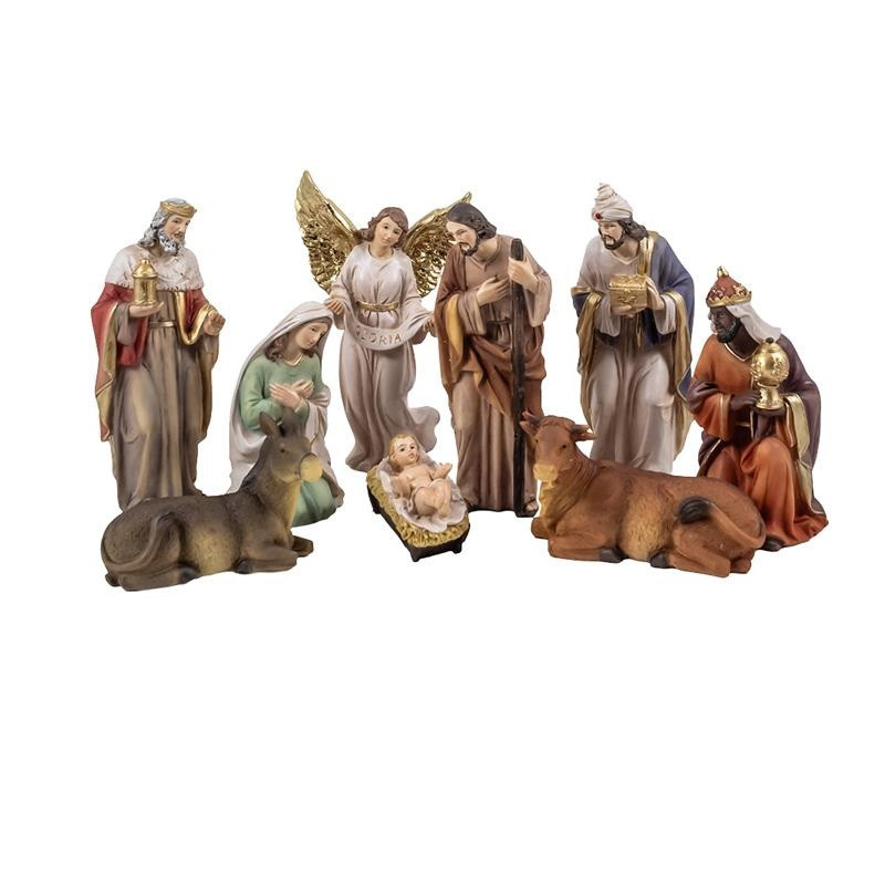 Misterio nacimiento clasico de 9 piezas de color de resina pintado a mano 15 cm