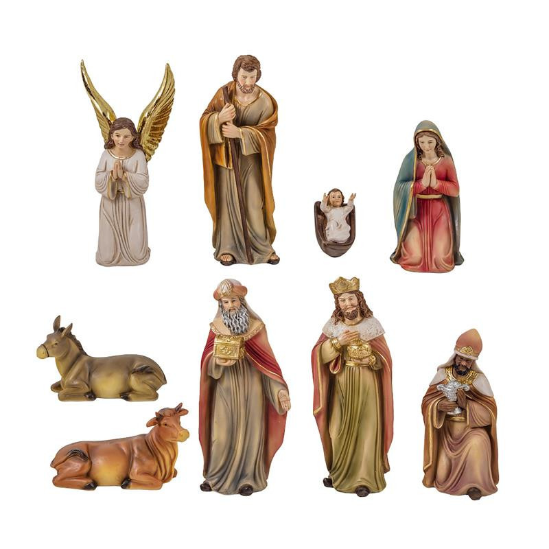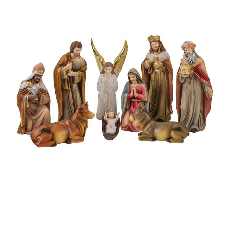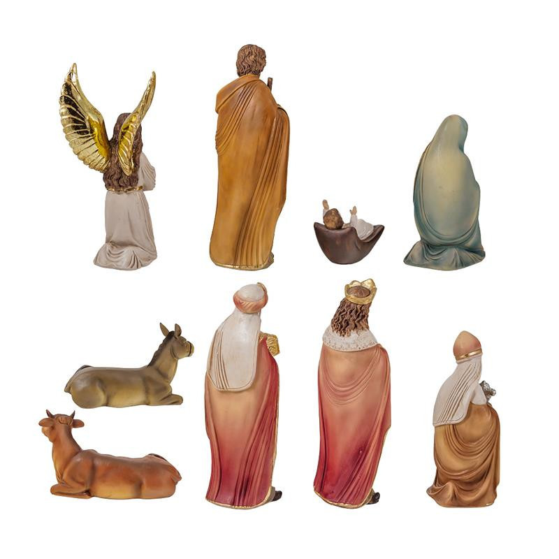 Misterio nacimiento clasico de 9 piezas de resina pintado a mano 20 cm