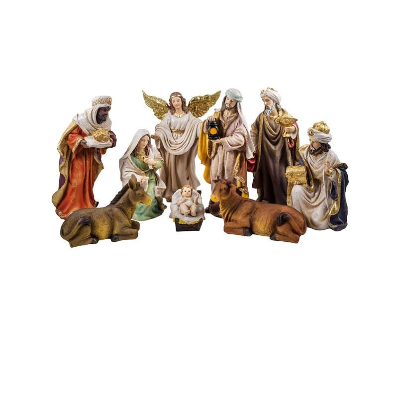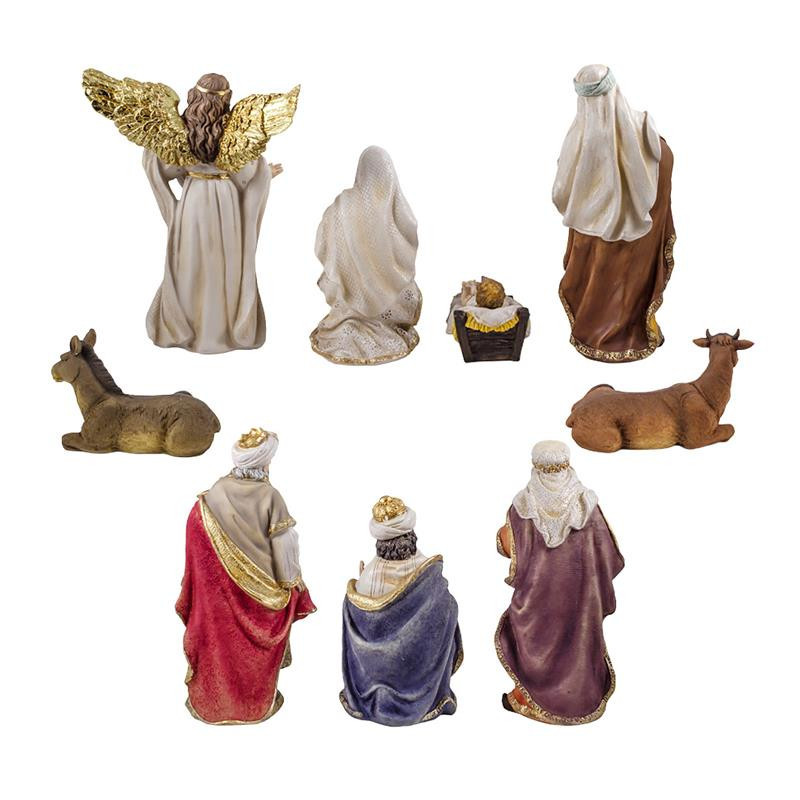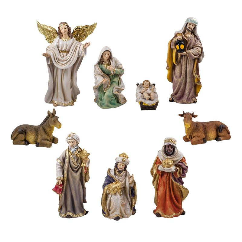 Misterio nacimiento clasico de 9 piezas de resina pintado a mano 25 cm