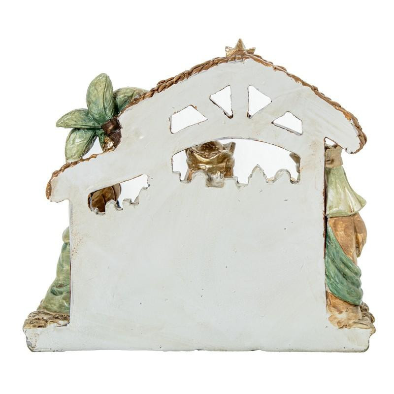 Misterio nacimiento belen con los reyes magos de resina blanco, beige y marron 17x19x7 cm