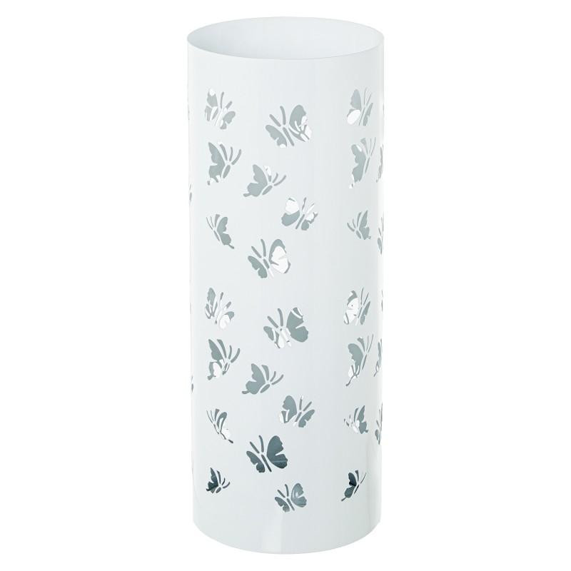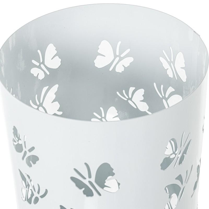Paraguero redondo con mariposas de metal blanco 49x19x19 cm
