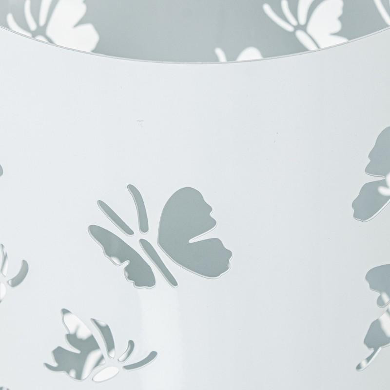 Paraguero redondo con mariposas de metal blanco. Medidas:19x19x49 cm