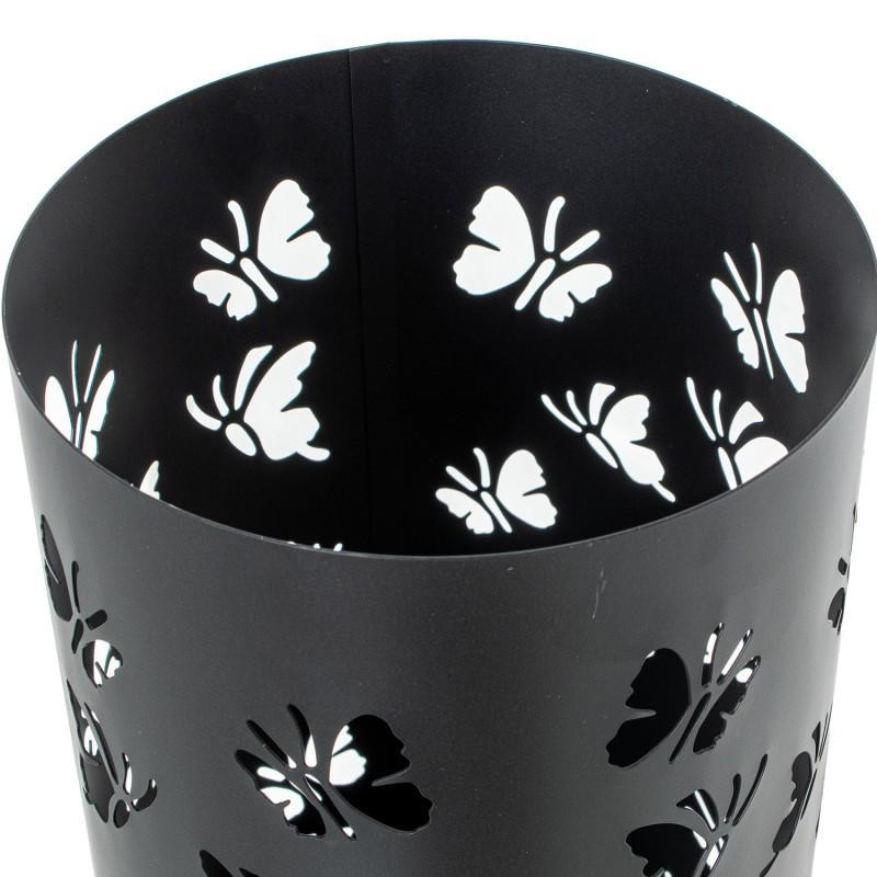 Paraguero redondo con mariposas de metal negro 49x19x19 cm