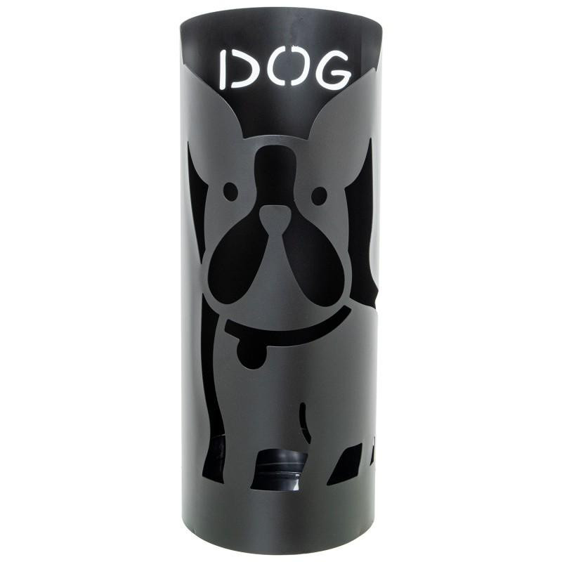 Paraguero redondo con perro de metal negro 49x19x19 cm