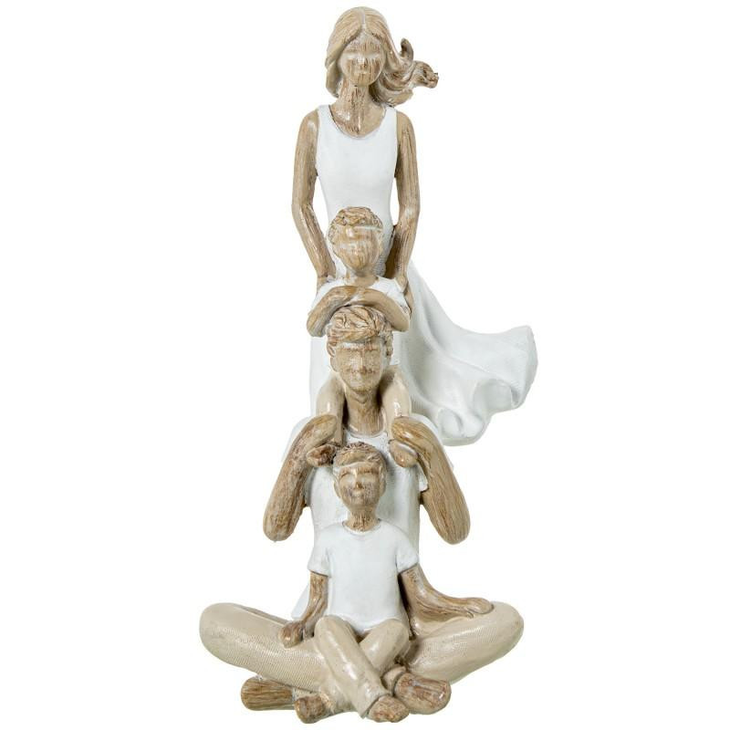 Figura de una familia de resina blanco, beige y natural 22x11x9 cm