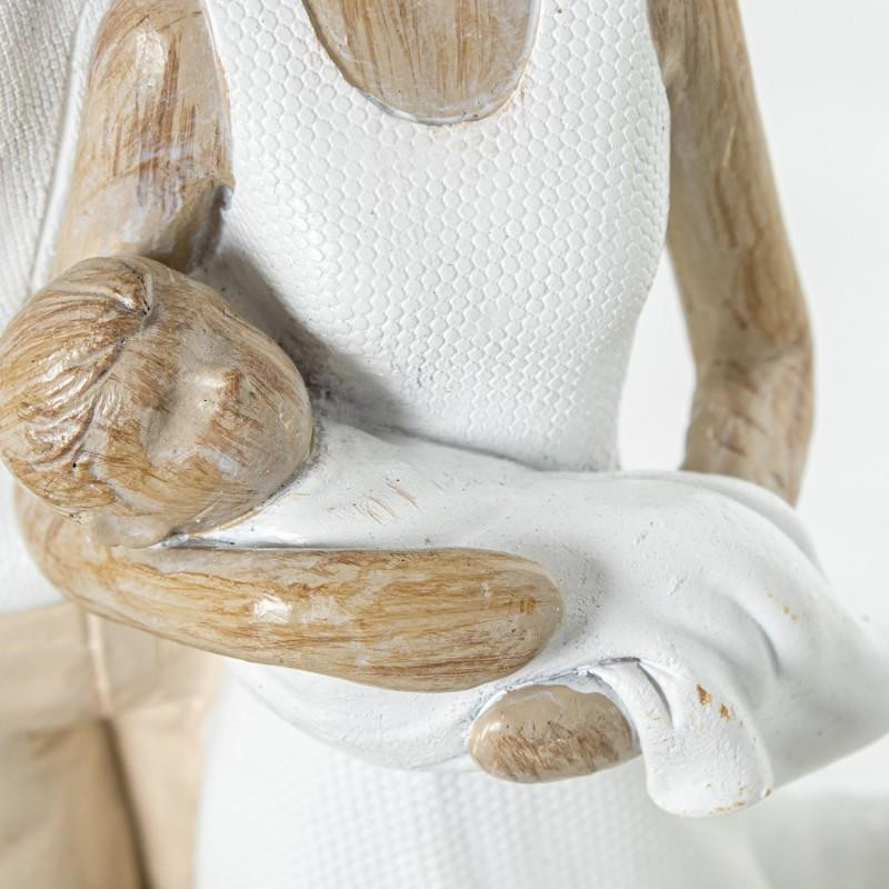 Figura de una familia de resina blanco, beige y natural. Medidas: 11x7x25 cm