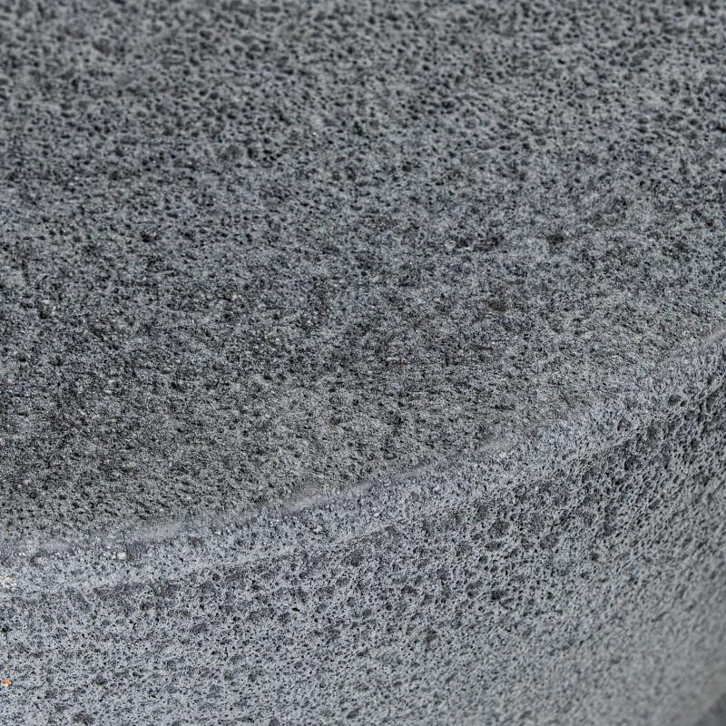 Pedestal con formas redondeadas de ceramica gris oscuro arena. Medidas: 29x29x50 cm