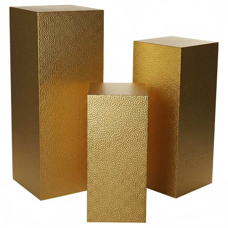 Set de 3 pedestales rectangulares y base cuadrada de metal dorado 110x41x41 cm