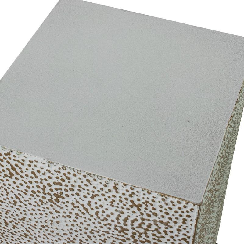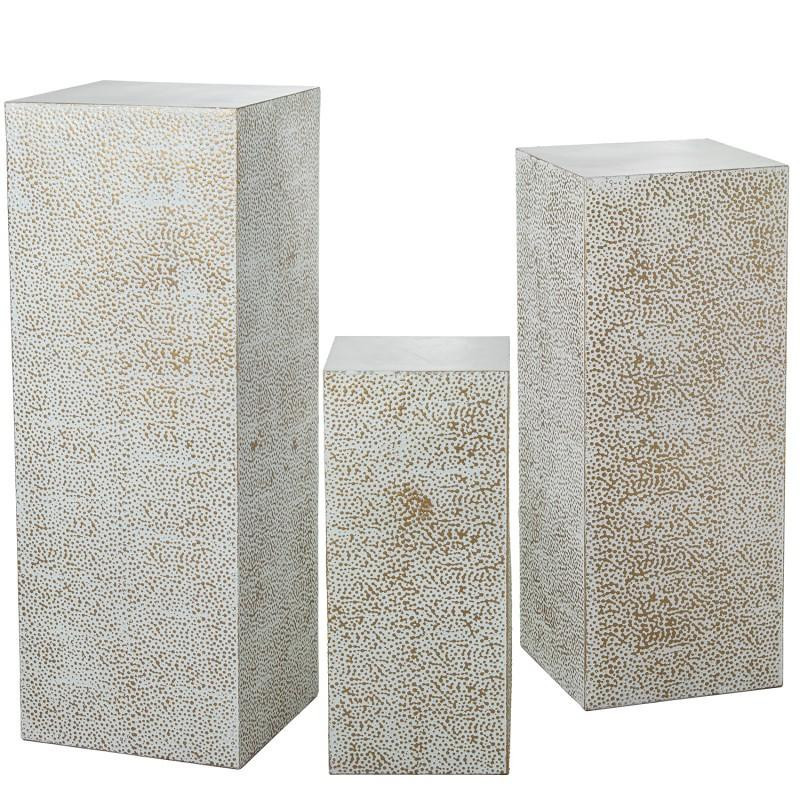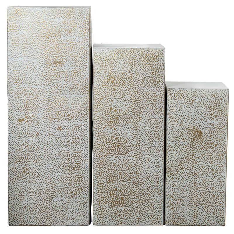 Set de 3 pedestales rectangulares y base cuadrada de metal blanco y dorado 110x41x41 cm
