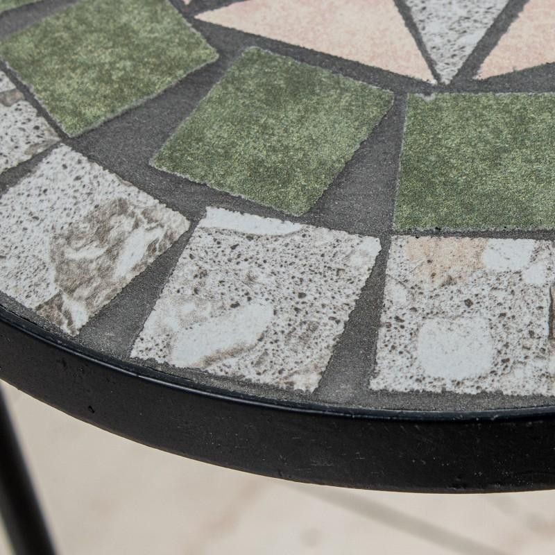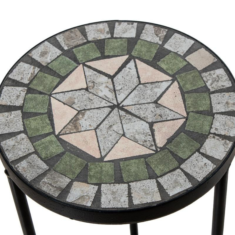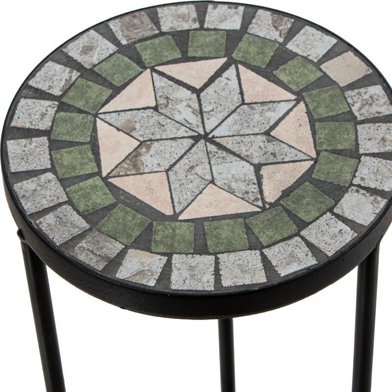 Set de 3 pedestales de metal y piedra en negro, verde y piedra 70x28x28 cm