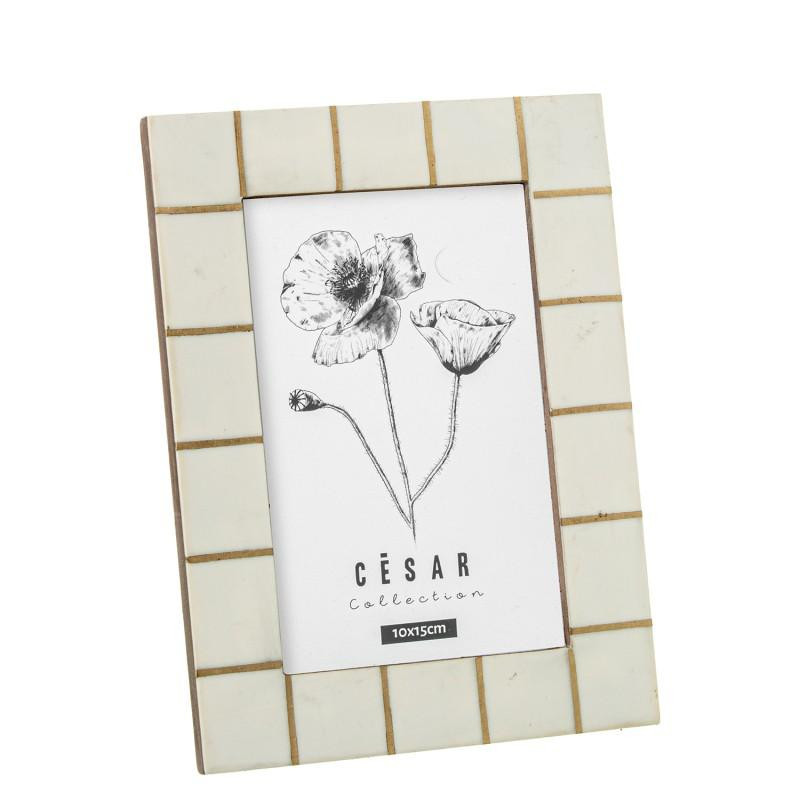 Portafotos para foto de 10x15 de resina y madera con base de madera blanco hueso y natural. Medidas: 10x15x1.5 cm