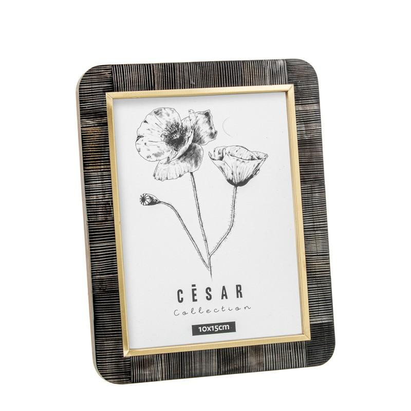 Portafotos para foto de 10x15 de resina con base de madera blanco hueso y negro. Medidas: 10x15x1.5 cm