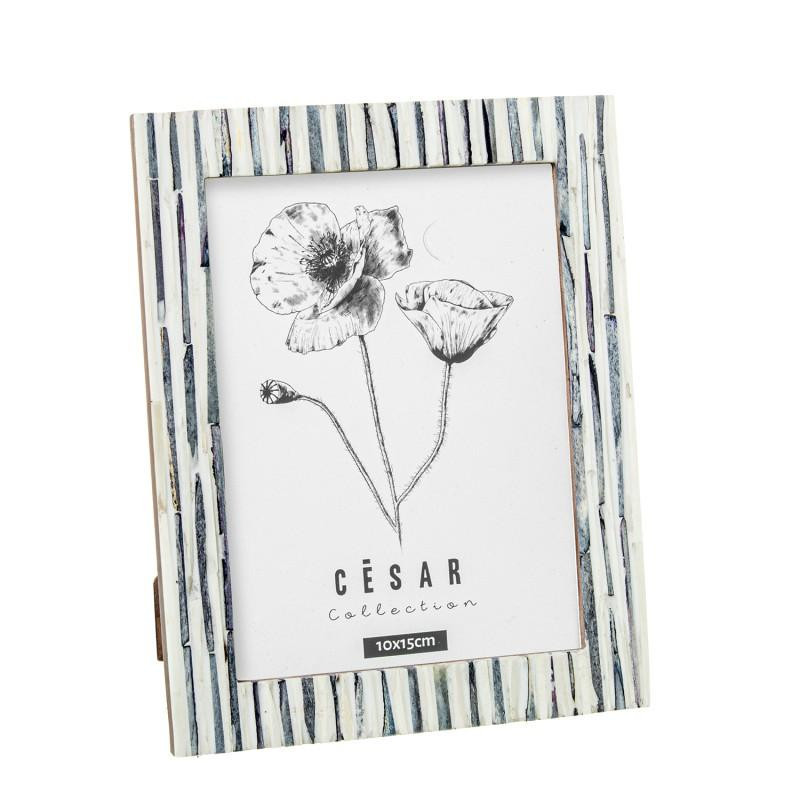 Portafotos para foto de 10x15 de resina con base de madera blanco hueso y azul 15x10x1.5 cm