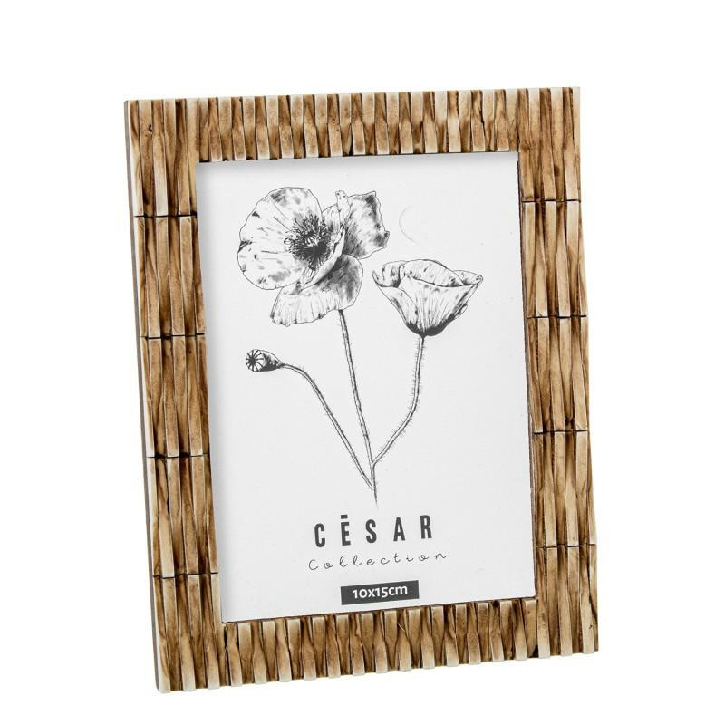 Portafotos para foto de 10x15cm de resina con base de madera marron hueso. Medidas: 10x15x1.5 cm